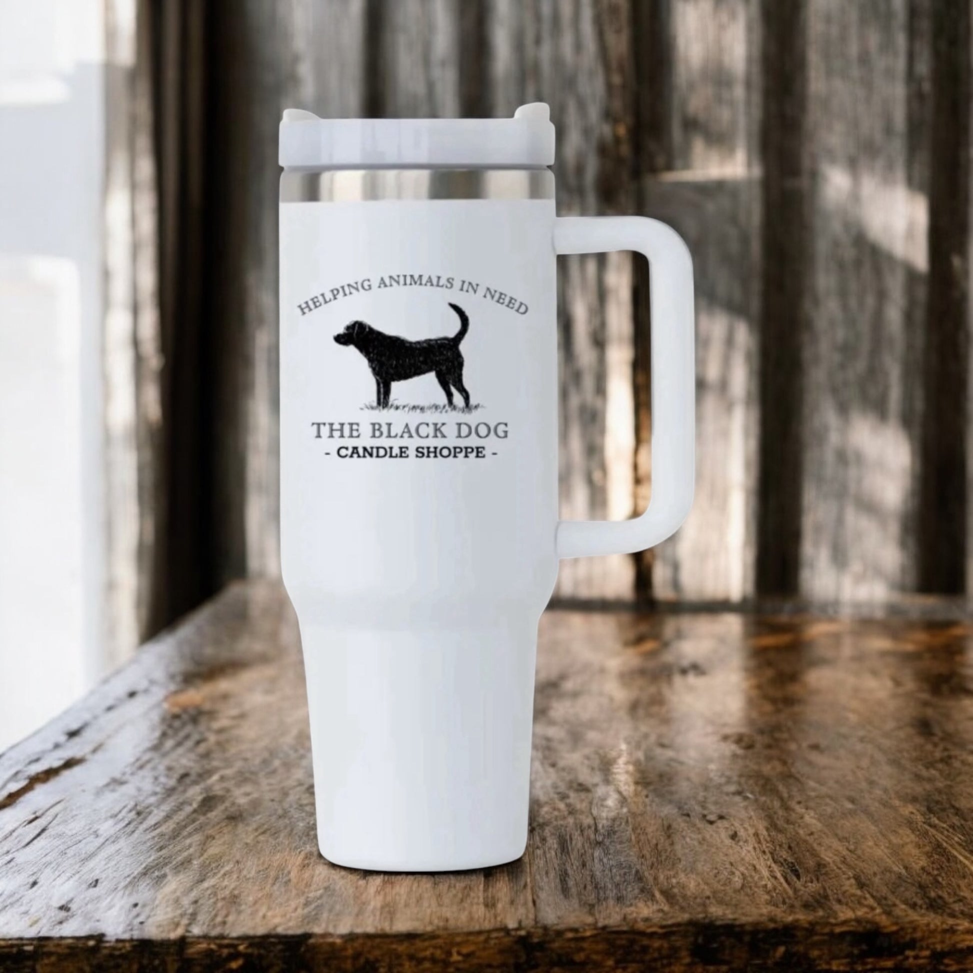 The clean, minimalist design with the bold black logo makes it the perfect accessory for any Black Dog Candle Shoppe fan. It fits in most car cup holders, and the sturdy construction ensures it will be your go-to tumbler for years.
