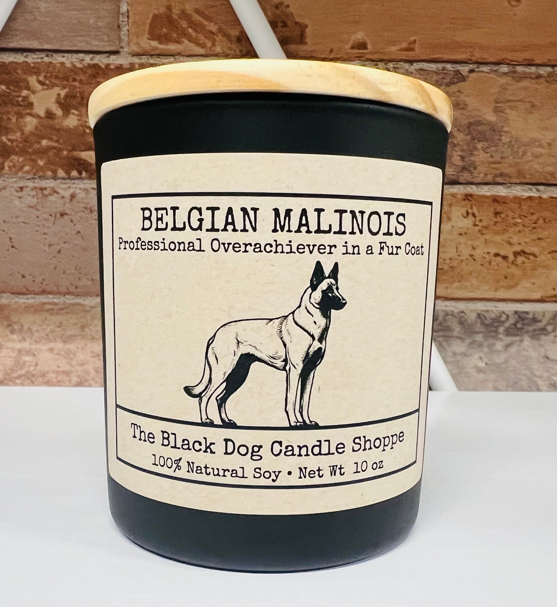 Hand-poured with 100% natural soy wax, this 10 oz candle is as bold and hardworking as the breed itself. Whether you're a fan of Malinois or just love dogs with drive and personality, this candle brings charm, humor, and cozy vibes all in one.