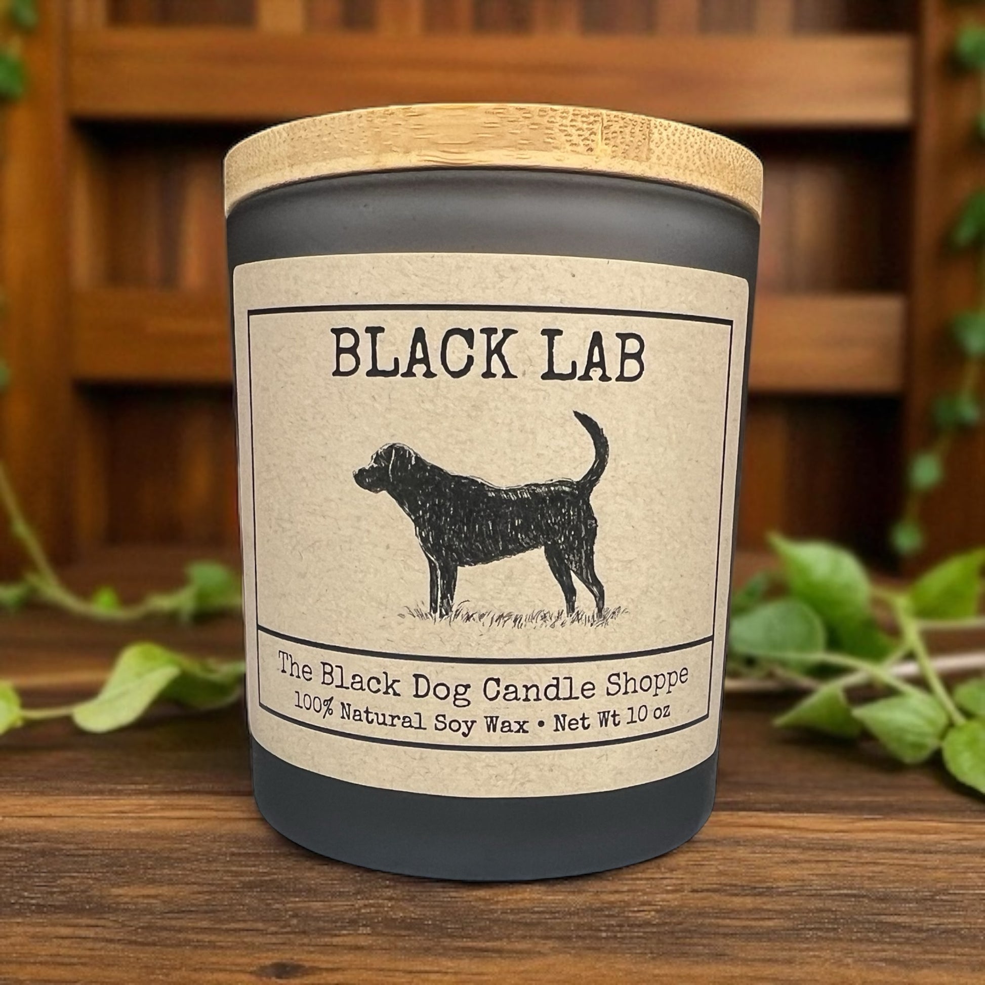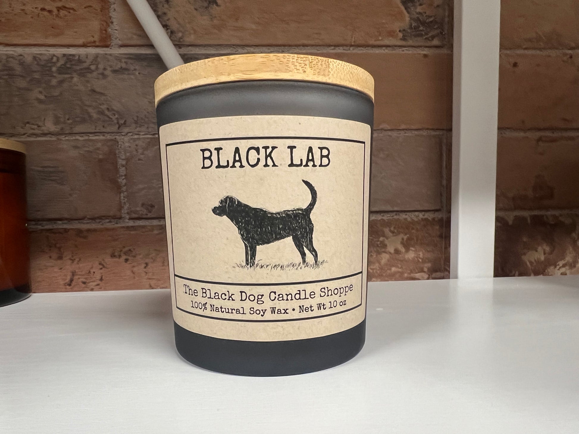 A tribute to loyalty, love, and the quiet strength of a faithful companion. The Black Lab candle celebrates one of the most beloved dog breeds—symbolizing devotion, warmth, and home. Featuring a classic black silhouette on a textured label, housed in a frosted black glass jar with a natural bamboo lid, this candle brings understated charm to any room.