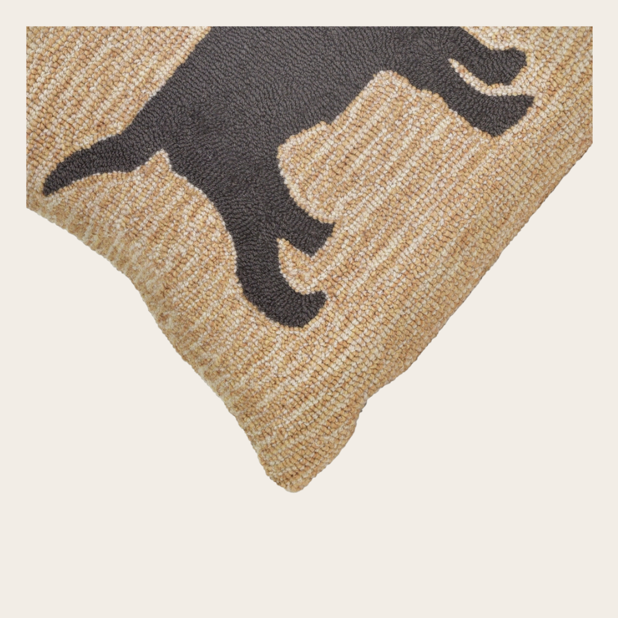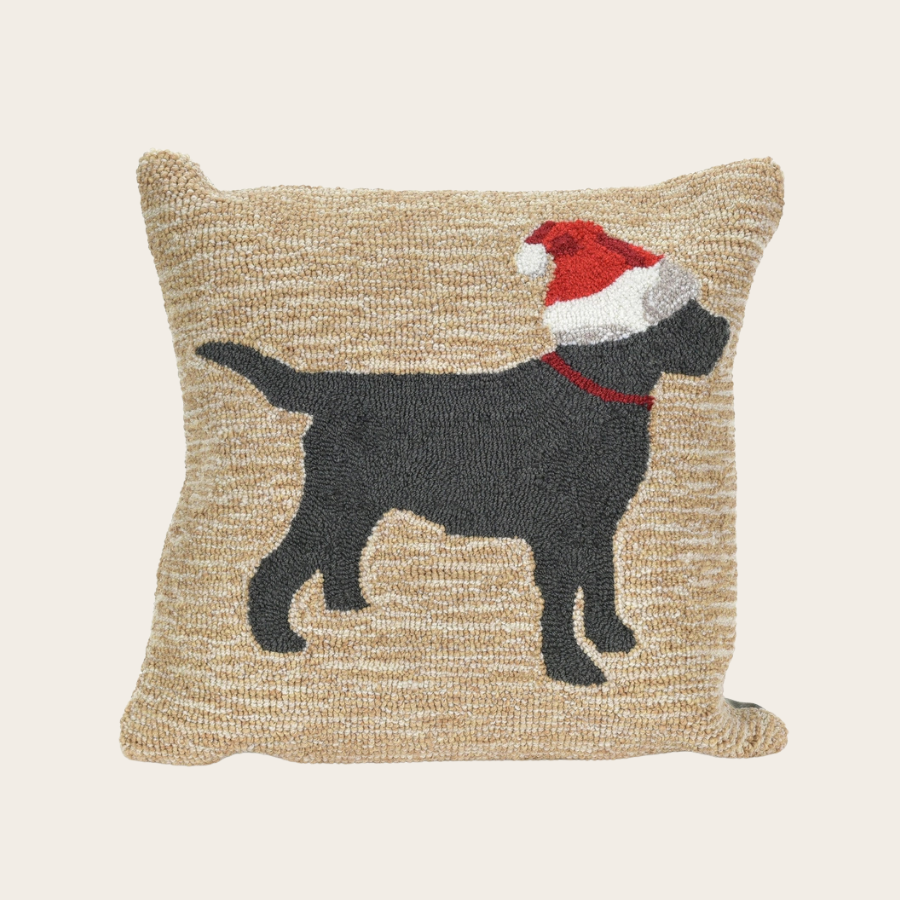 Add a festive touch to your home with this charming decorative pillow. Featuring a playful black dog in a Santa hat, this pillow is crafted from durable polyester with a cozy hooked texture. The neutral background makes it easy to style with any holiday décor, while the 18" x 18" size is perfect for a sofa, chair, or bed. A fun and seasonal accent for dog lovers!