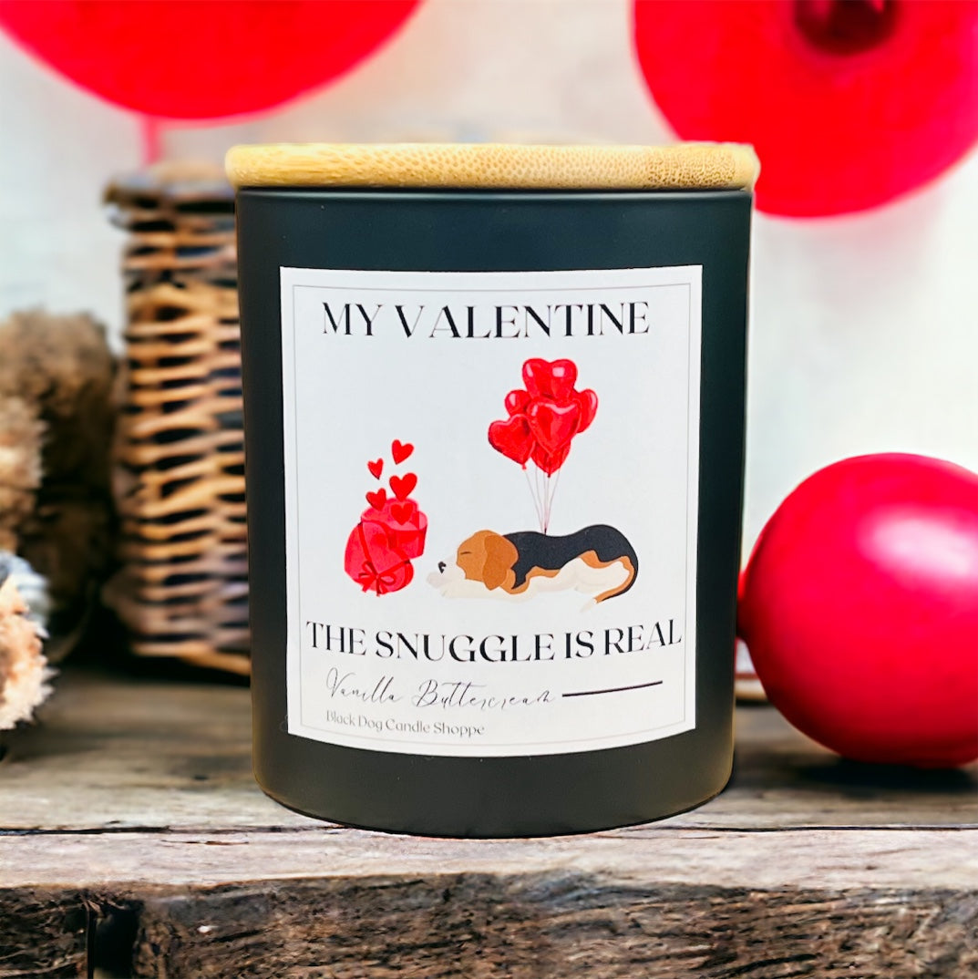“The Snuggle is Real” Valentine’s candle combines the sweet and comforting aroma of vanilla buttercream with a dog-themed twist. This delightful scent creates a cozy and romantic atmosphere, celebrating the genuine affection shared with your furry friend. Perfect for adding a touch of warmth and love to your Valentine’s Day festivities.
