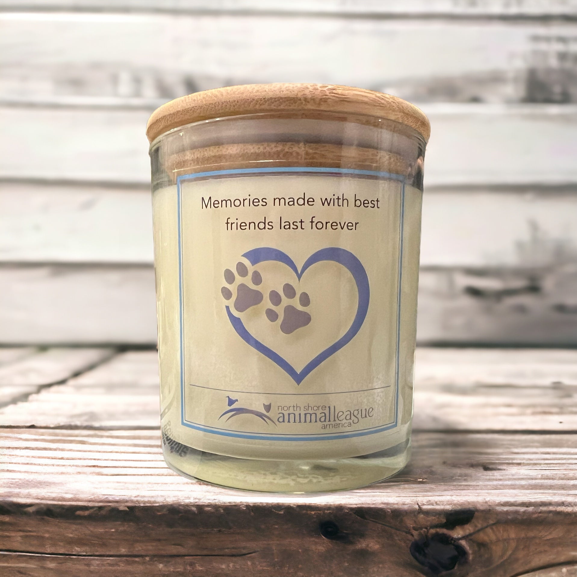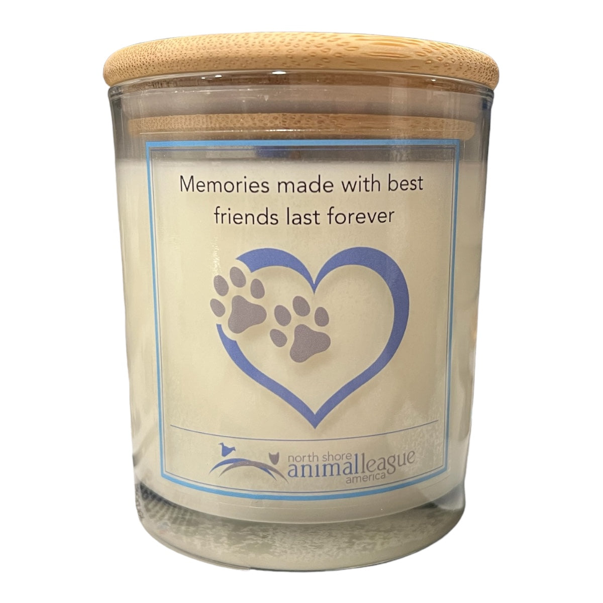 North Shore Animal League America Condolence Candles. A touching gift for someone experiencing the loss of a best friend. Scented in Cotton Blossom to give a clean fresh aroma.