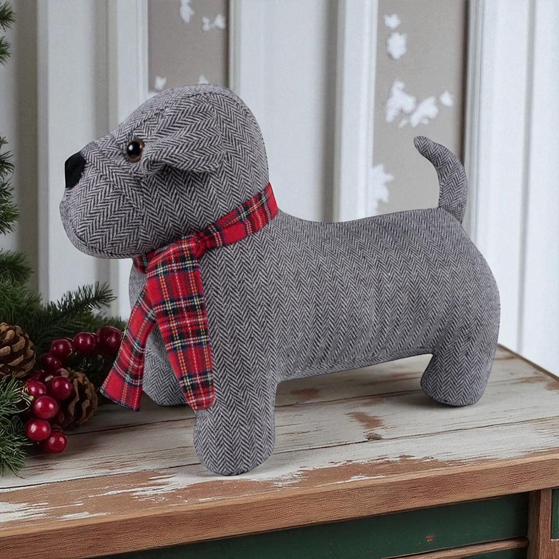 The 3D Puppy decorative holiday throw pillow perfectly complements the Levtex Home Spencer Plaid Green bedding collection. This Christmas pillow is sized at 16 x 11in. and features an adorable 3D puppy in a herringbone pattern wearing a red plaid scarf. The cuddly puppy color palette makes this a versatile accessory for your bed, couch or favorite chair. The holiday pillow comes pre-filled with a soft, luxurious polyester.