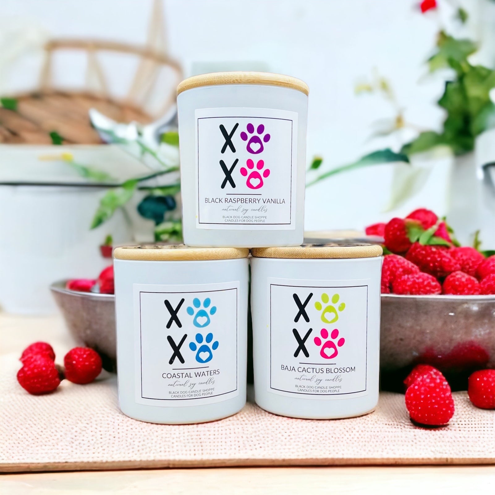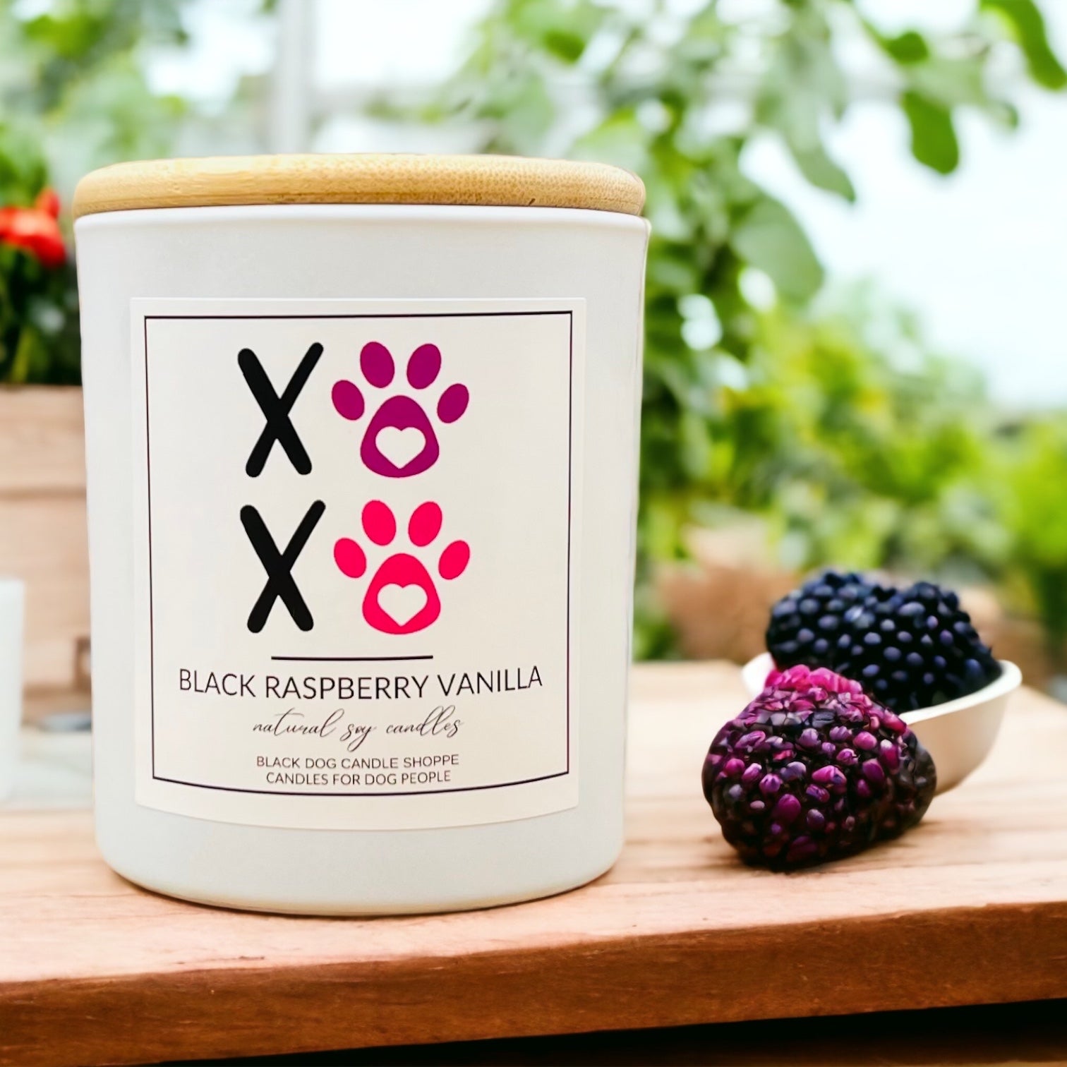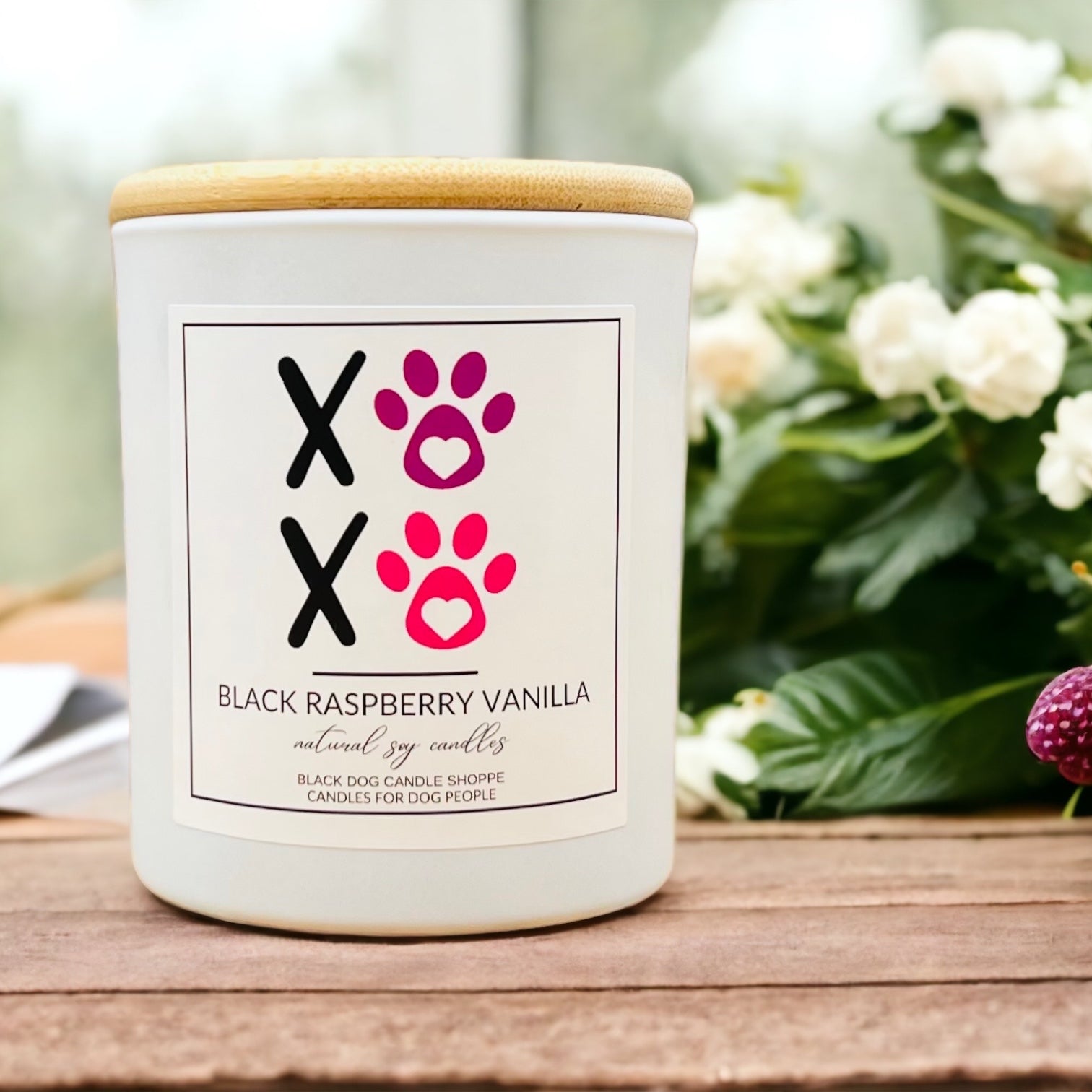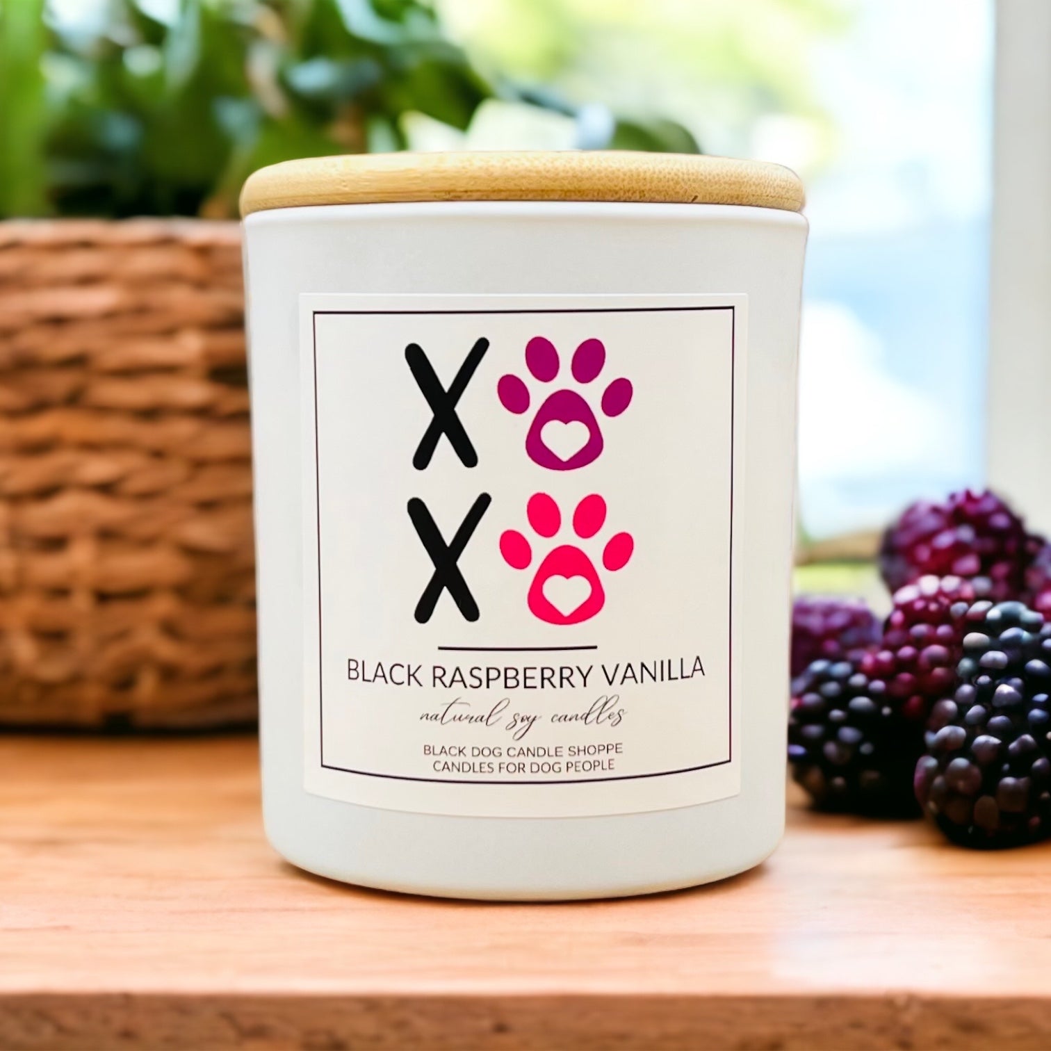 XOXO in Black Raspberry Vanilla. Cute and colorful! Natural soy candles will burn +70 hours if burned correctly. Candles are 4" high and 3.5" in diameter.